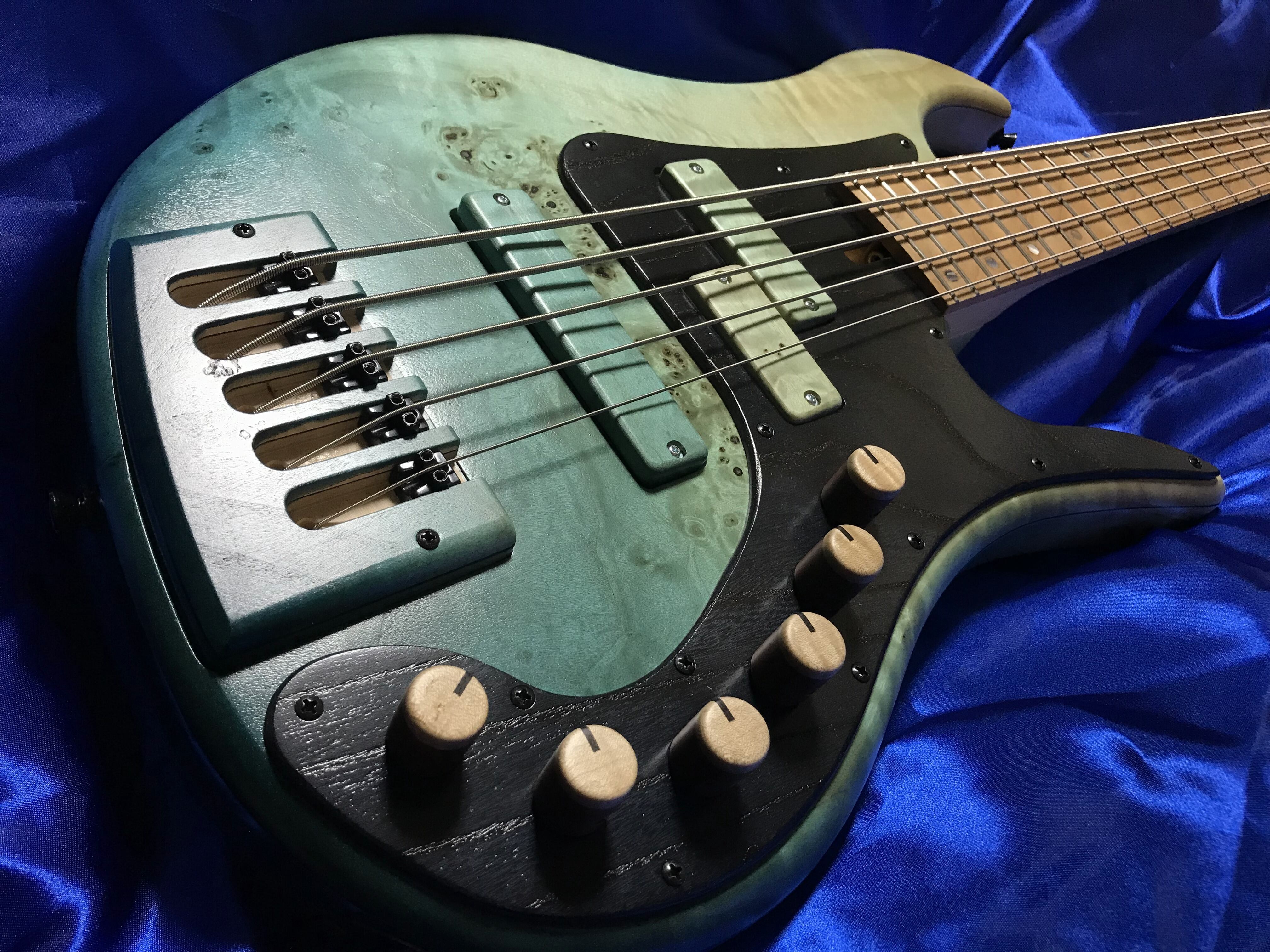 5弦としては軽量に仕上がった本機ですが、フロントのスプリットコイルが太さ・力強さを与え、リア・シングルコイルが輪郭と張りを与えます