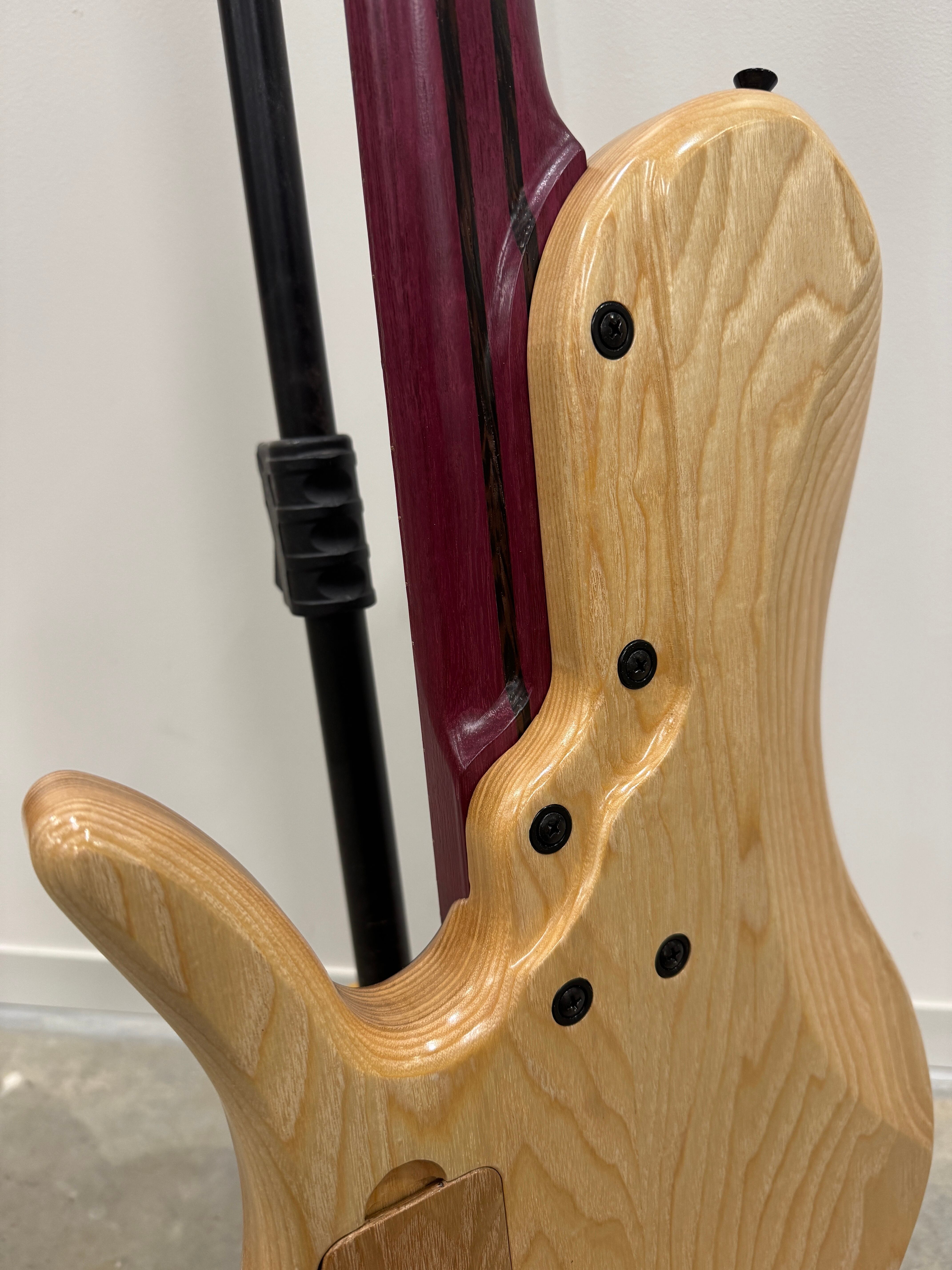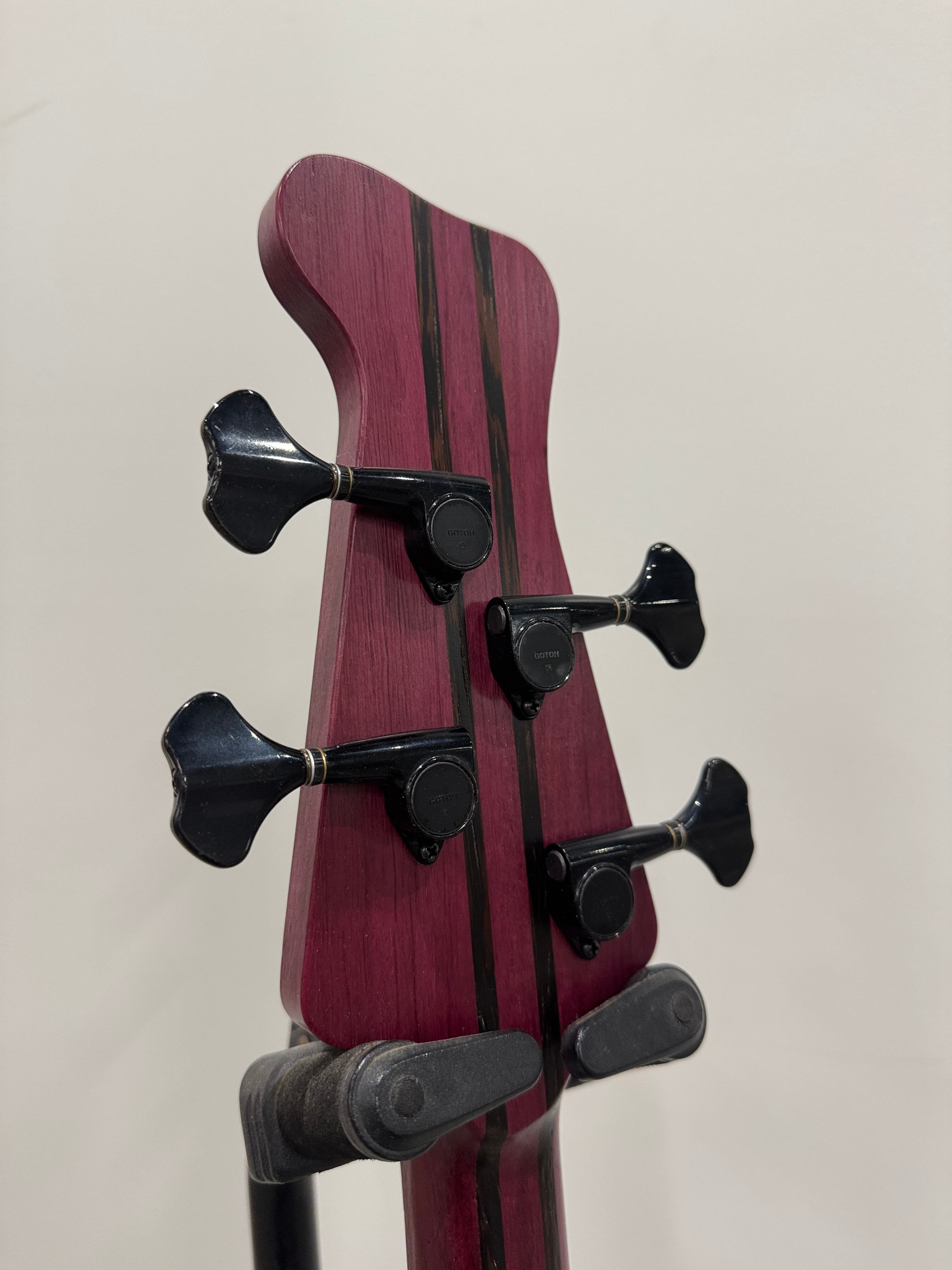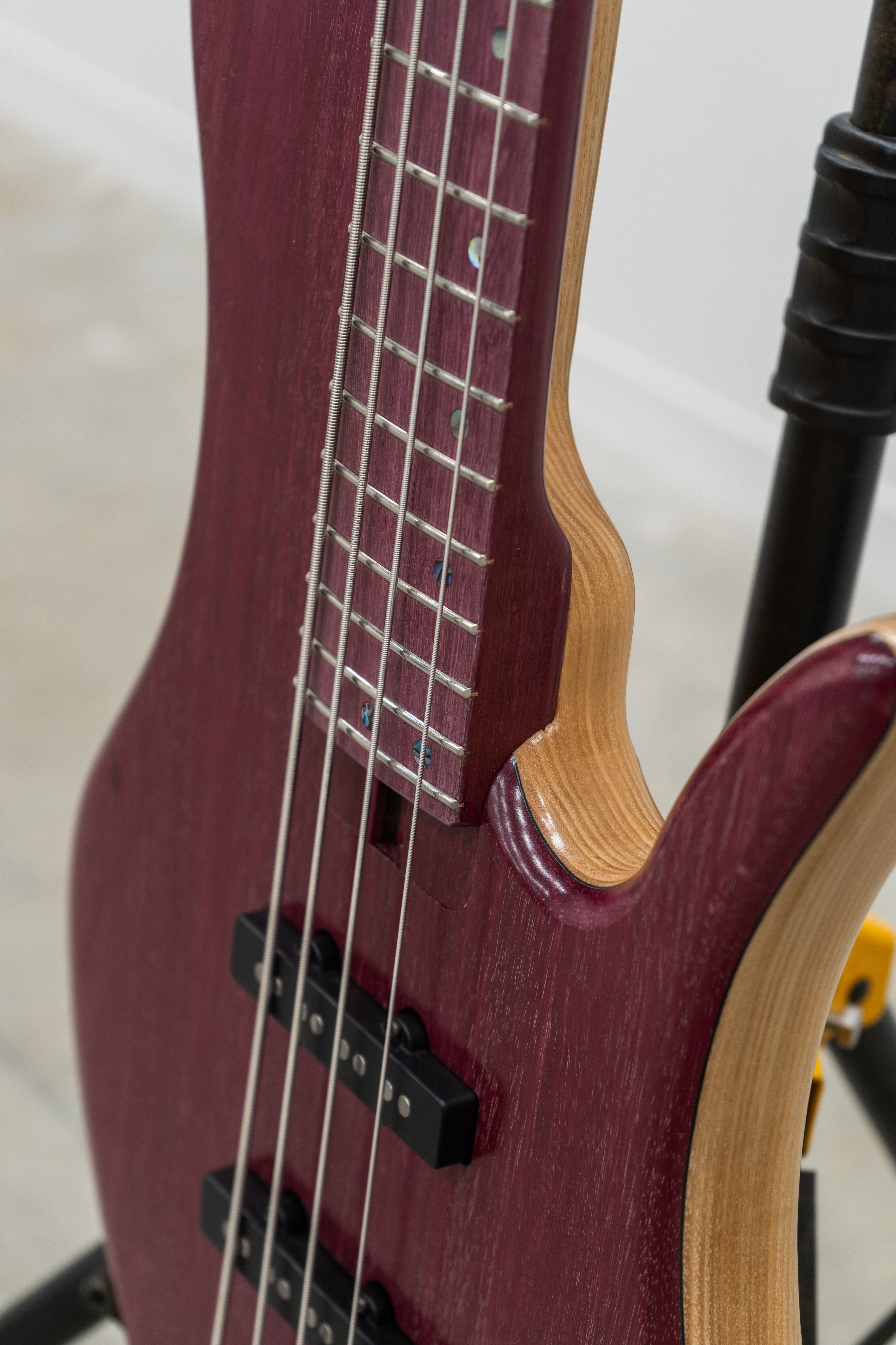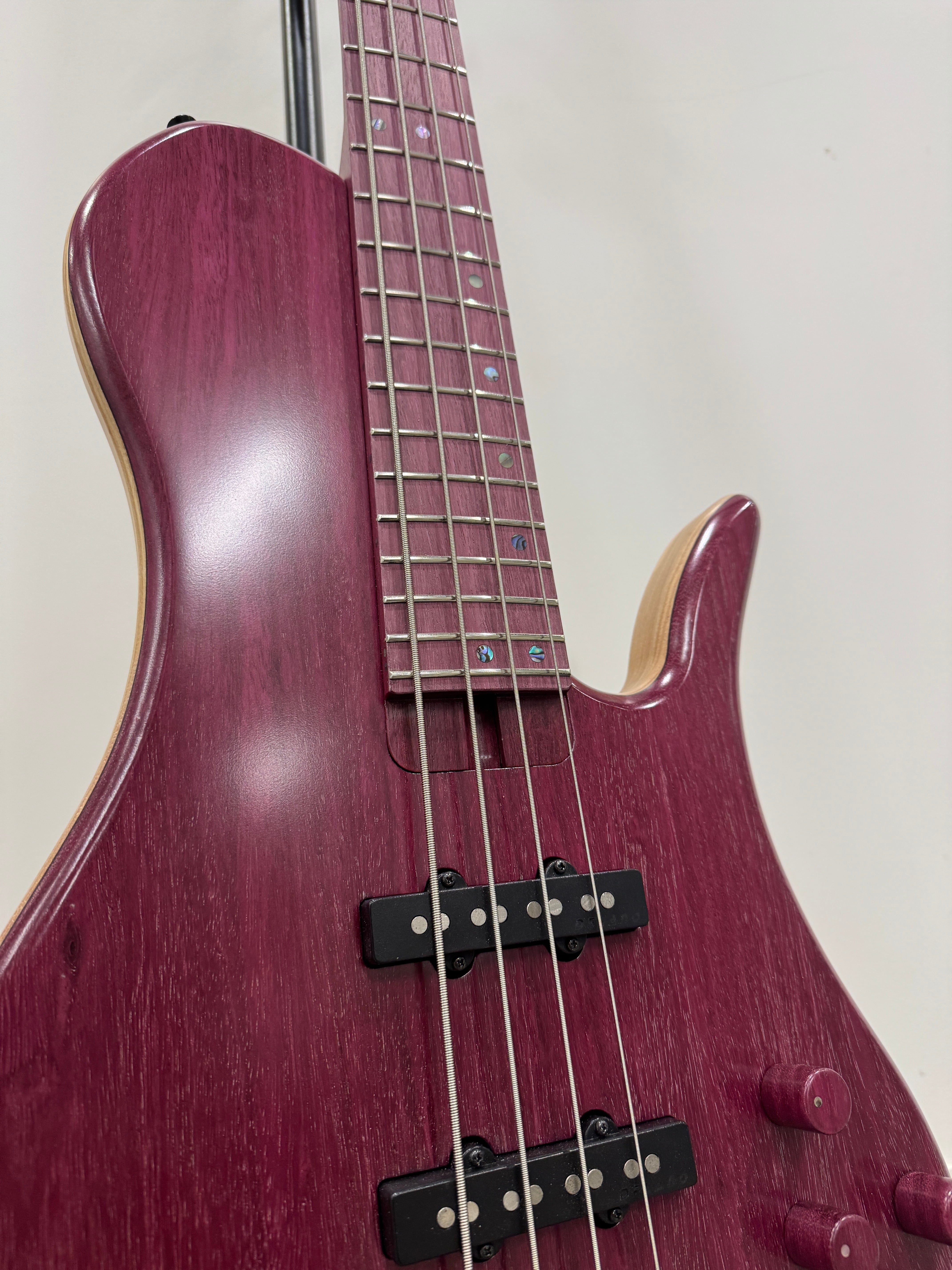 ネック材・指板材にも同様に発色の良いパープルハートを採用